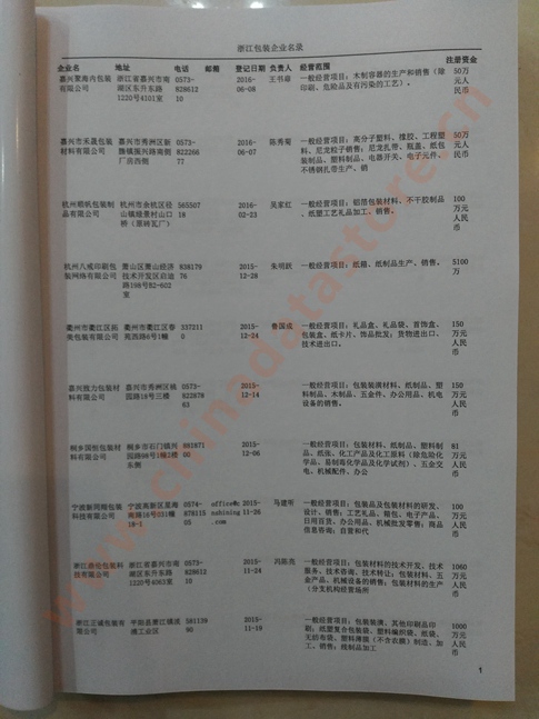浙江包裝企業黃頁 所有浙江包裝企業名單  80% - 90% 600元 附贈一冊浙江包裝紙質印刷品