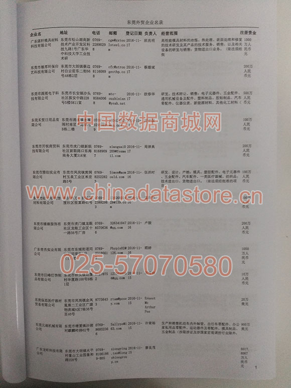 東莞外貿企業黃頁包括:外貿企業名稱、地址、電話、傳真、郵箱、經營范圍、注冊資金等信息。