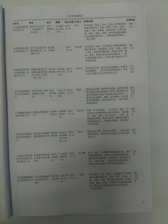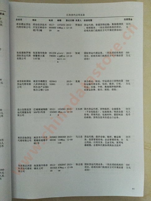 江蘇貨運公司黃頁包括:企業名稱、負責人聯系方式、企業電話、傳真、Email、經營范圍、地址、郵編等信息。