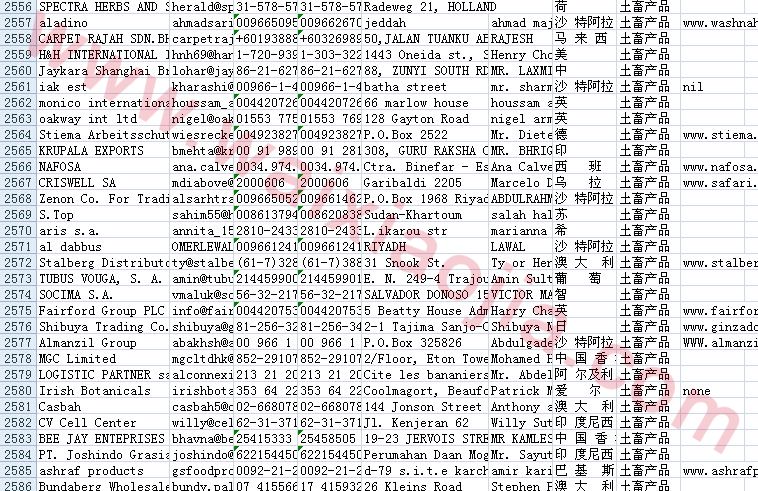 土畜采購商名單數據為Excel格式,信息可任意修改、復制、打印、導出及導入到傳真、郵件群發等軟件中,無任何限制。