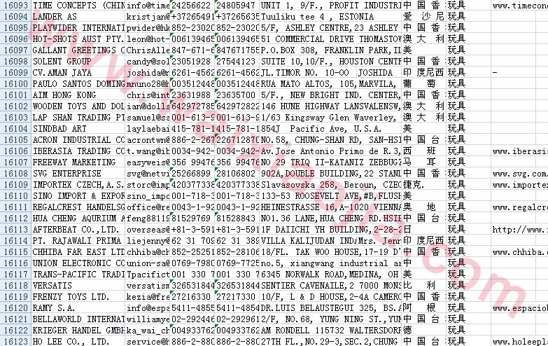 玩具采購商名單數據為Excel格式,信息可任意修改、復制、打印、導出及導入到傳真、郵件群發等軟件中,無任何限制。