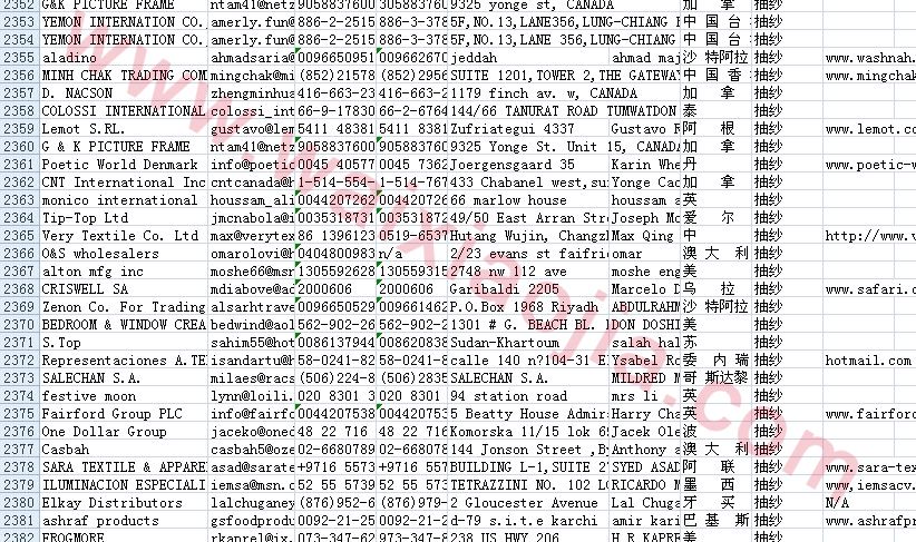 抽紗采購商名單數據為Excel格式,信息可任意修改、復制、打印、導出及導入到傳真、郵件群發等軟件中,無任何限制。