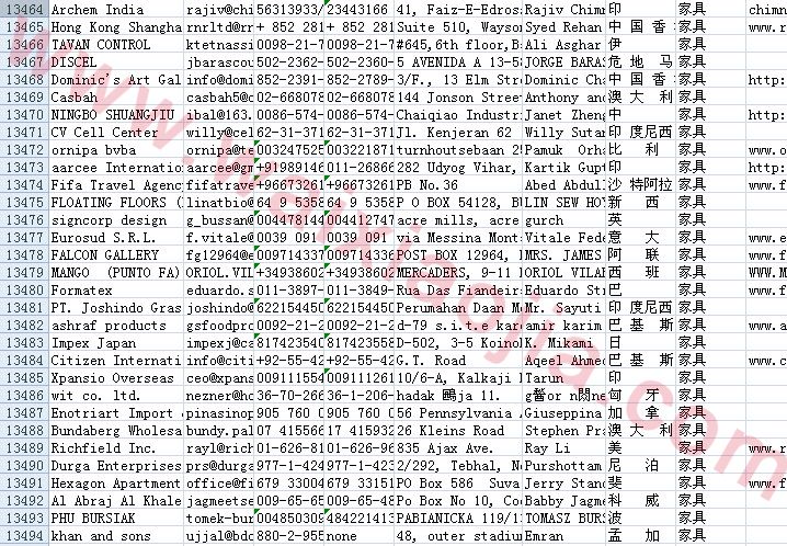 家具采購商名單數(shù)據(jù)為Excel格式,信息可任意修改、復(fù)制、打印、導(dǎo)出及導(dǎo)入到傳真、郵件群發(fā)等軟件中,無任何限制。