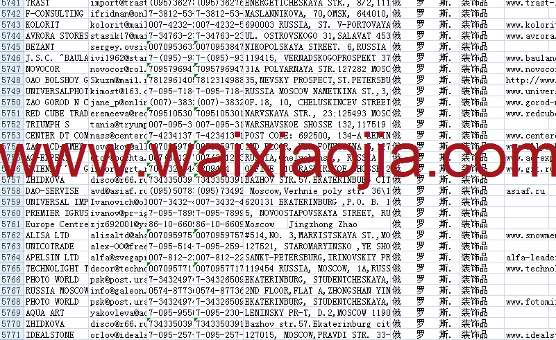 俄羅斯采購商名單數(shù)據(jù)為Excel格式,信息可任意修改、復制、打印、導出及導入到傳真、郵件群發(fā)等軟件中,無任何限制。