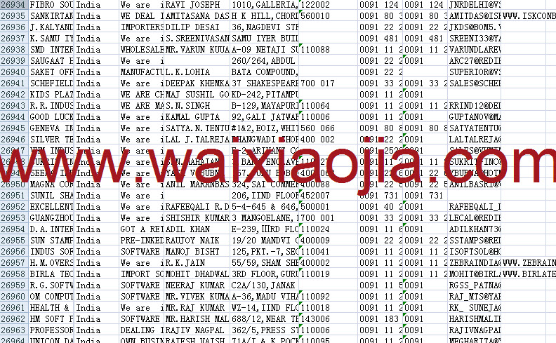 印度采購商名單數據為Excel格式,信息可任意修改、復制、打印、導出及導入到傳真、郵件群發等軟件中,無任何限制。